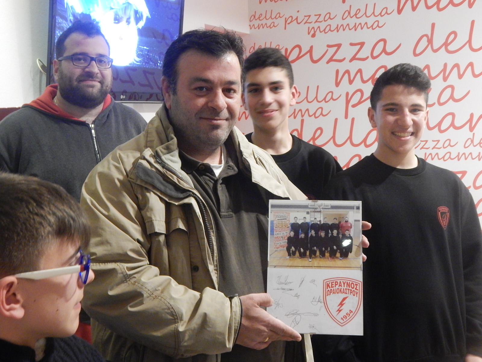 Oι γονείς των αθλητών και ο κόουτς κ Θεόδωρος Χριστοφορίδης, διοργάνωσαν μετά το τέλος του τελικού εκδήλωση στην οποία συμμετείχε και η ομάδα του παιδικού που ολοκλήρωσε σήμερα (χθες) το πρωτάθλημα νικώντας την Δόξα Δρυμού (στη Νεοχωρούδα) και κατέλαβε την τέταρτη θέση, χάνοντας στα σημεία την πρόκριση στην επόμενη φάση, στην Pizza della mamma, τον έναν απo τους χορηγούς του τουρνουά και της ομάδας.