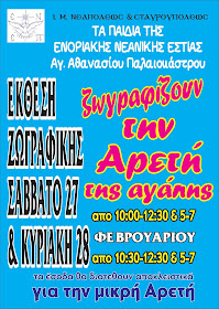 “Ζωγραφίζουν την Αρετή της αγάπης” Έκθεση ζωγραφικής Σάββατο 27 & Κυριακή 28 Φεβρουαρίου απο τα παιδιά της Ενοριακής Νεανικής εστίας Αγ. Αθανασίου Παλαιοκάστρου
