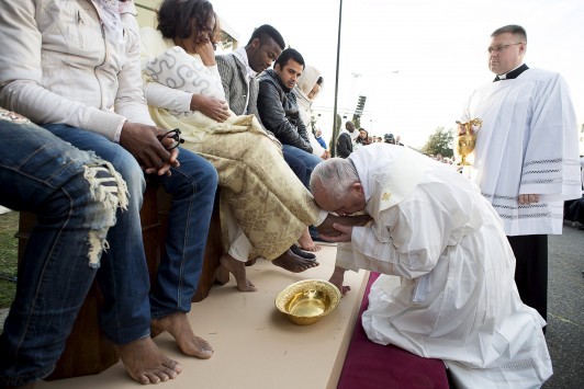 Ο ποντίφικας γονάτισε και έπλυνε τα πόδια, όπως ορίζει η τελετουργία, σε άνδρες πρόσφυγες, αλλά και σε γυναίκες, ανατρέποντας την παγιωμένη συνήθεια που ακολουθούσε μέχρι τώρα ο εκάστοτε πάπας. Πολλά από τα άτομα που βρίσκονται στο συγκεκριμένο κέντρο υποδοχής προσφύγων του Καστελνουόβο Ντι Πόρτο, σε λίγα χιλιόμετρα απόσταση από την Αιώνια Πόλη, είναι μάλιστα μουσουλμάνοι.