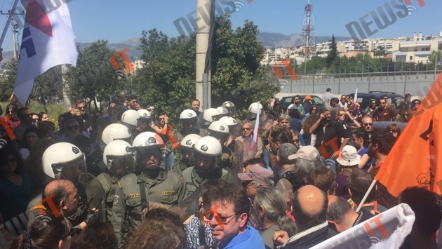 Αν και αρχικά οι εκπαιδευτικοί που πέρασαν την πύλη ήταν λίγη, στη συνέχεια ήταν αρκετοί με αποτέλεσμα, μετά την αρχική εμφάνιση μιας διμοιρίας των ΥΜΕΤ να κάνουν την εμφάνισή τους και άνδρες των ΜΑΤ. Παρά τη... στενή επαφή πάντως των εκπαιδευτικών με τους αστυνομικούς δεν υπάρχουν επεισόδια.