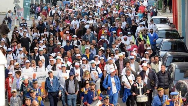 Πατρινοί κάθε ηλικίας παίρνουν μέρος στη μεγάλη Πορεία Αγώνα κατά της ανεργίας, από την Πάτρα στην Αθήνα.