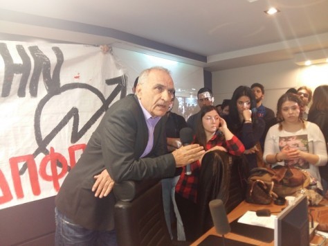 Στην αίθουσα εγκλωβίστηκαν οι βουλευτές του ΣΥΡΙΖΑ Γιώργος Βαρεμένος και Μαρία Τριανταφύλλου - Μια κουβέντα της κυρίας Τριανταφύλλου προς τους φοιτητές, έκανε την ένταση να χτυπήσει κόκκινο...