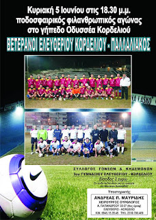 ποδοσφαιρικό αγώνα μεταξύ των Βετεράνων του Ελευθερίου Κορδελιού και του