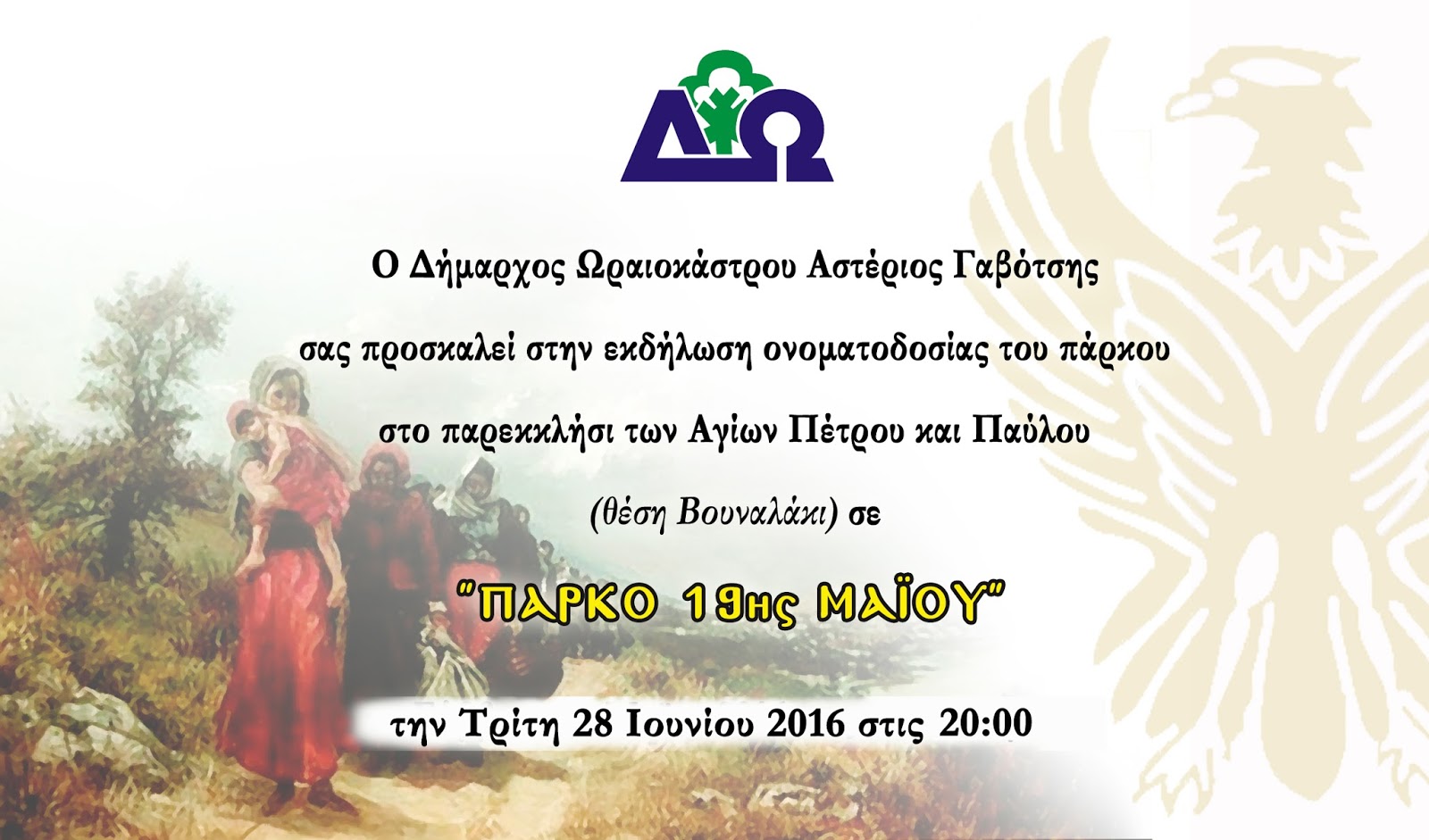Ωραιόκαστρο: Πρόσκληση για τη ονοματοδοσία του πάρκου της 19ης Μαίου