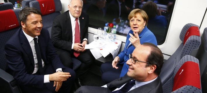 Μέρκελ, Ολάντ και Ρέντσι πήγαν βόλτα με το τρένο -Στη μεγαλύτερη σήραγγα στον κόσμο [εικόνες]