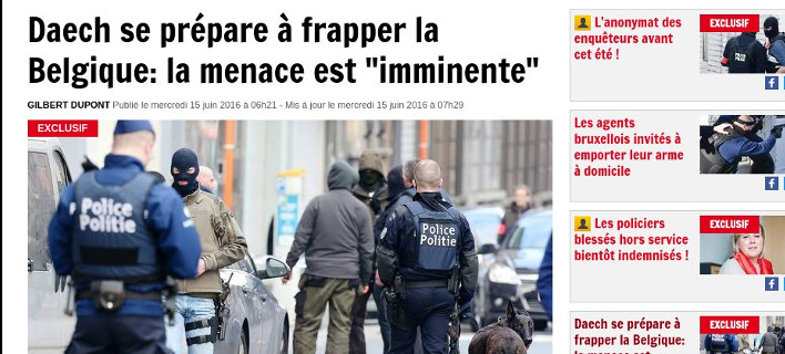 Σύμφωνα με αποκλειστικές πληροφορίες της βελγικής εφημερίδας DH η αντιτρομοκρατική υπηρεσία του Βελγίου έχει ενημερώσει όλες τις αστυνομικές διευθύνσεις της χώρας, αλλά και τη Γαλλία για ενδεχόμενα χτυπήματα οπαδών του ISIS, οι οποίοι έφυγαν από τη Συρία και μέσω Ελλάδος και Τουρκίας έφτασαν σε Γαλλία και Βέλγιο.