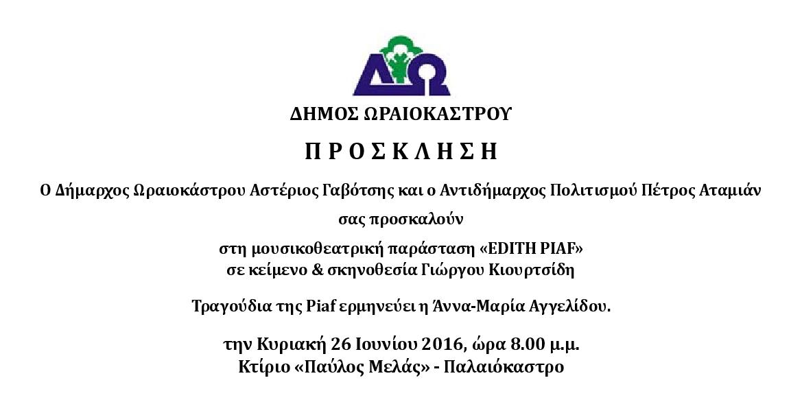 Ωραιόκαστρο: Πρόσκληση για την εκδήλωση Edith Piaf