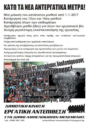Εργατική Αντεπίθεση Αμπελοκήπων: Διαδήλωση στη ΔΕΘ στις 10/9/2016