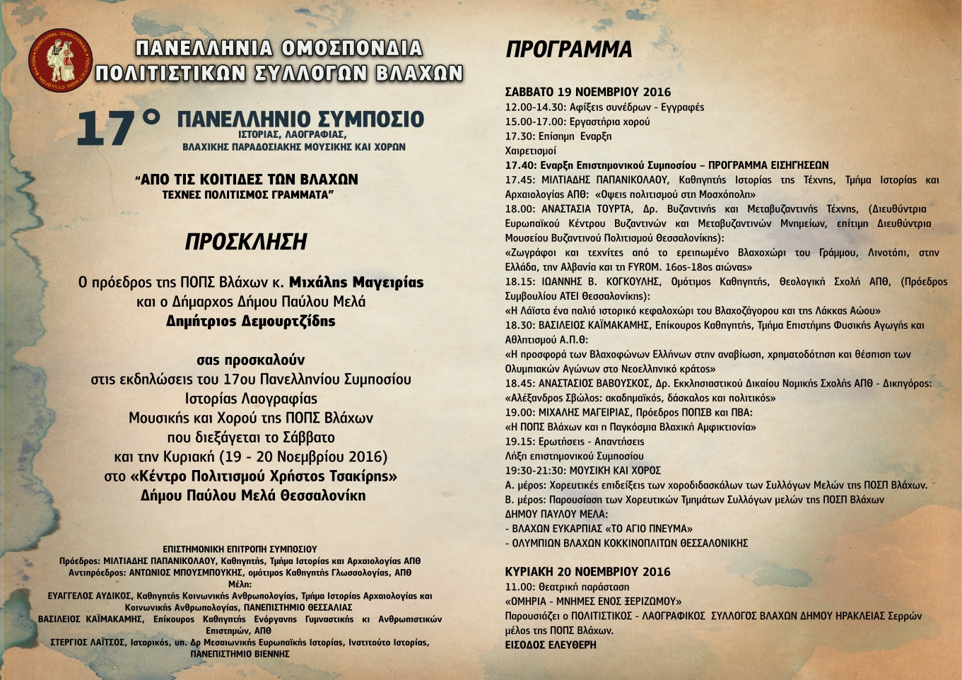 Συμπόσιο της Πανελλήνιας Ομοσπονδίας Πολιτιστικών Συλλόγων Βλάχων σε συνεργασία με το Δήμο Παύλου Μελά και το ΑΠΘ