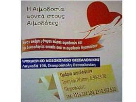 Να προσέλθουν για αιμοδοσια στο πλησιέστερο σ αυτούς νοσοκομείο ώστε να καλυφθούν οι ανάγκες σε αίμα (όλων των ομάδων και κυρίως της ομάδας Ο -).
