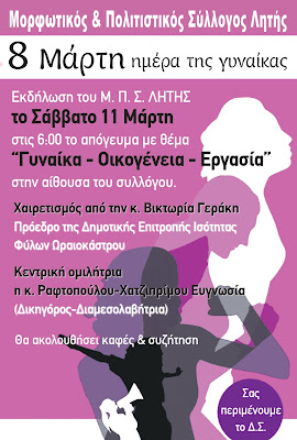 Εκδήλωση Πολιτιστικού Συλλόγου Λητής για την Παγκόσμια Ημέρα της Γυναίκας