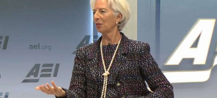 Η Κριστίν Λαγκάρντ χαμογέλασε με νόημα, όταν ρωτήθηκε για την Ελλάδα, σε εκδήλωση του think tank AEI, για την παγκόσμια παραγωγικότητα.