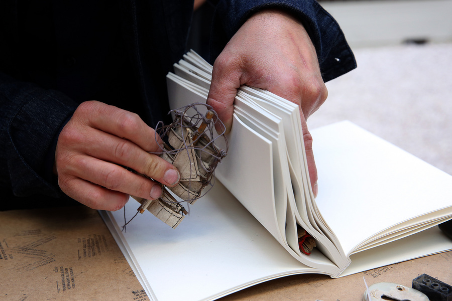 Ο Knorr τοποθετεί τα επιλεγμένα από τον πελάτη αντικείμενα ανάμεσα στις λευκές σελίδες ενός βιβλίου διαστάσεων 16Χ23 εκ., τα περνά από μια υδραυλική πρέσα κι έτοιμο το βιβλίο, υπογεγραμμένο από τον καλλιτέχνη.