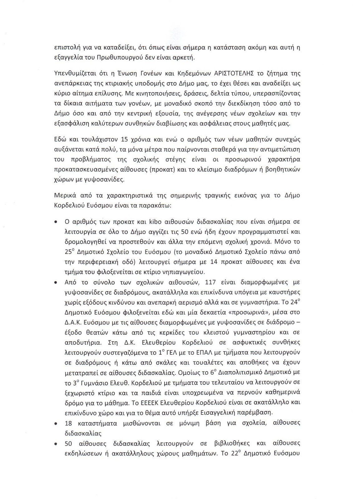 Ένωση γονέων Κορδελιού Ευόσμου: Αγωνία για την τραγική κατάσταση της σχολικής στέγης
