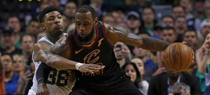 Με μια ακόμη ολοκληρωτική εμφάνιση ο «βασιλιάς» πήρε από το χέρι τους Καβαλίερς και τους οδήγησε σε θρίαμβο με 87-79 μέσα στη Βοστώνη και με 4-3 στους τελικούς του ΝΒΑ. Εκεί όπου βρίσκεται ανελλιπώς ο ίδιος από το 2011 και θα αντιμετωπίσει (με μειονέκτημα έδρας) το νικητή του Ρόκετς-Γουόριορς σε μια σειρά που θα αρχίσει τα ξημερώματα της Παρασκευής.