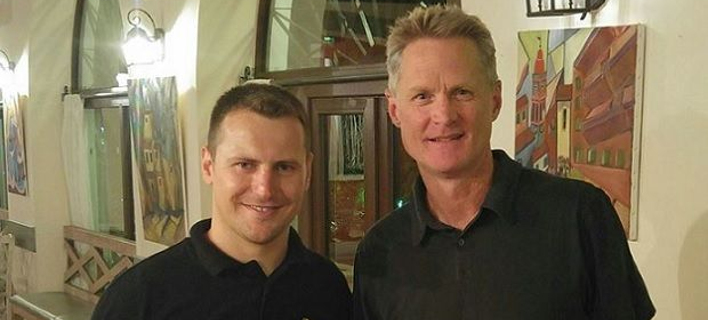 Ο προπονητής των Γκόλντεν Στέιτ Γουόριορς (έχει κατακτήσει πέντε πρωταθλήματα NBA ως παίκτης των Σικάγο Μπουλς και τρία ως προπονητής στο Γκόλντεν Στέιτ) βρίσκεται στην Κέρκυρα μαζί με την οικογένειά του και το βράδυ του περασμένου Σαββάτου βρέθηκε σε εστιατόριο του νησιού, απ' όπου έφυγε με τις καλύτερες εντυπώσεις.